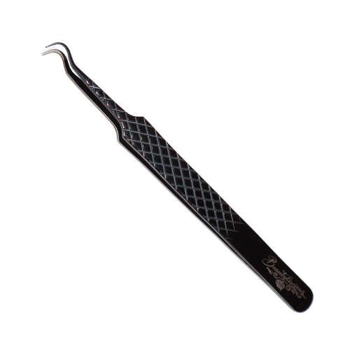 Each of our Luxury Black Plasma line pick up tweezers comes in the option of Diamond Dusted which is a finely blasted inner prong smooth finish or Mega Fiber Grip which has a unique basket weave-like texture imprinted inside the pick up prongs for those who struggle with the grip of traditional style tweezers, this new fiber grip technology gives an overall sweet spot to each tweezer, allowing them to be used with any diameter lashes seamlessly, from .03-.15.