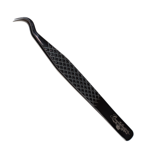 Lisa Lisa is a busty, top-heavy shaped tweezer with a large sharp rounded curve perfect for picking up volume fans without smashing into the tweezer, one of our LUXURY BLACK PLASMA line.